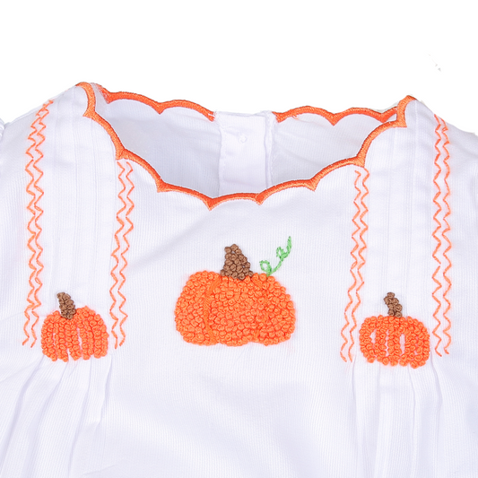 Pumpkin Smocked White Knit Long Sleeve Boys T-Shirt