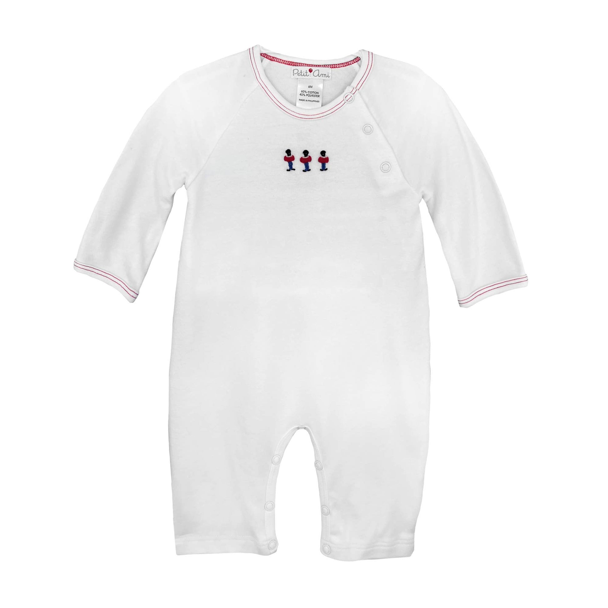 This beautiful knit romper is soft and comfortable, made with 100% cotton this outfit is perfectly soft for baby! Featuring a delicate bullion embroidered nutcracker design that is perfect for Christmas and the holiday season! The lightweight cotton fabric keeps little ones cool and comfortable and is easy to care for – just machine wash and tumble dry.